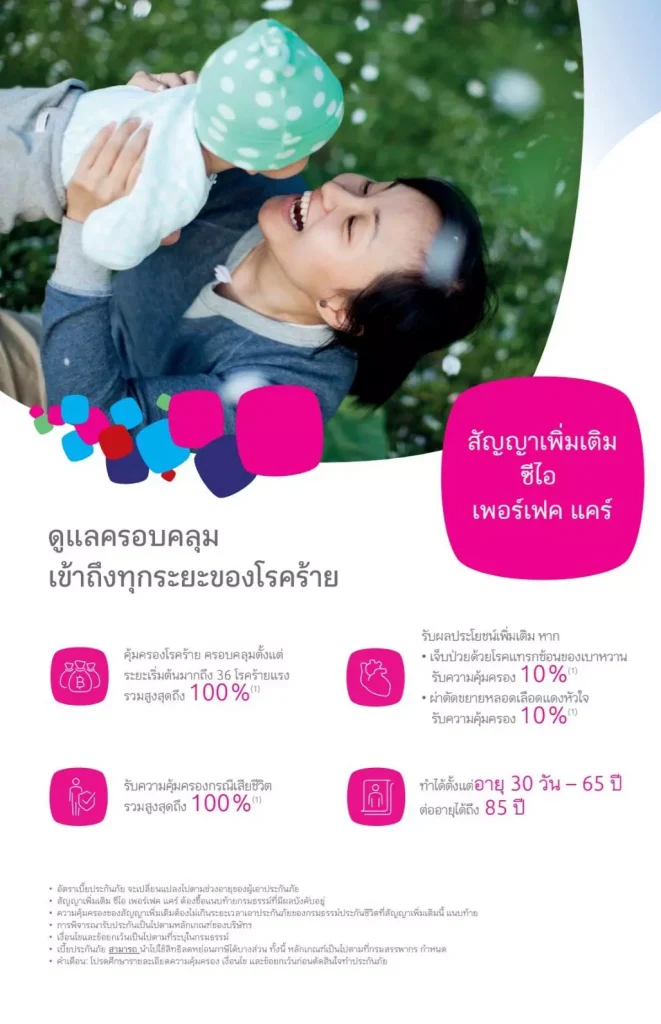 2. ประกันโรคร้ายแรงซีไอเพอร์เฟคแคร์ (จ่ายเป็นเงินก้อนให้กับผู้ทำประกัน เจอ จ่าย จบ )