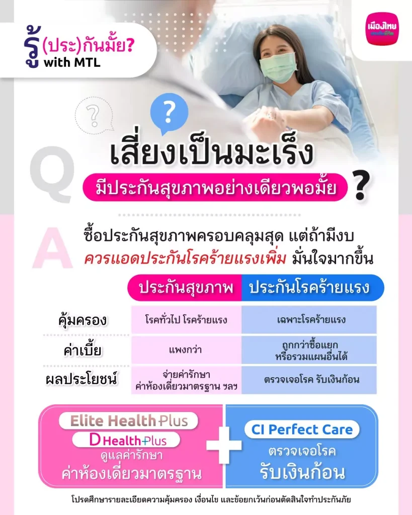 – ตรวจพบโรคร้ายแรง จ่ายเงินก้อนชดเชยสูงสุด 400%