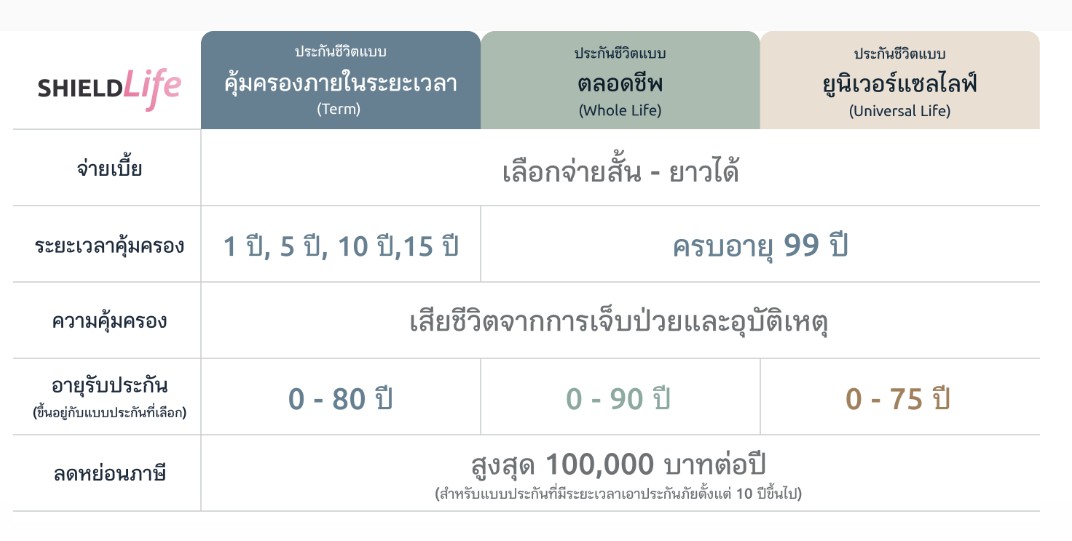 - สามารถนำมาใช้ในการวางแผนและการลดหย่อนภาษีได้ สูงสุดถึง 100,000 บาท สำหรับประกันชีวิตแบบทั่วไป และ 200,000 บาท สำหรับประกันชีวิตแบบบำนาญ