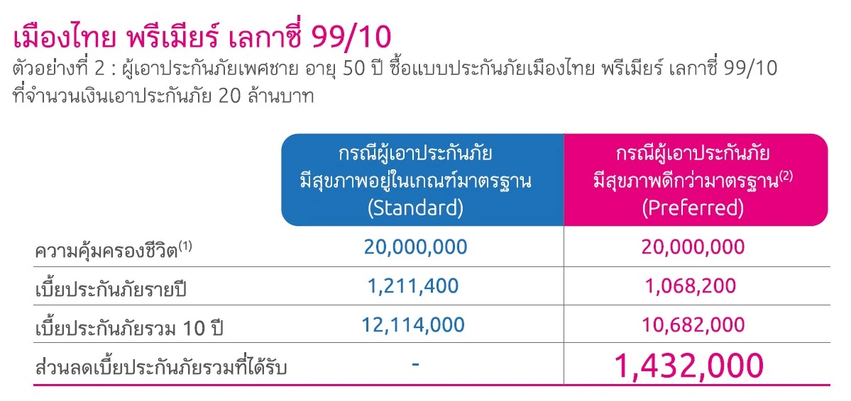 จะดีไหมครับ ?? ถ้าสุขภาพดีตามมาตรฐาน เบี้ยประกันลดลงเหลือเพียง 1,068,200 บาท ชำระ 5 ปี รวม 10,682,000 บาท