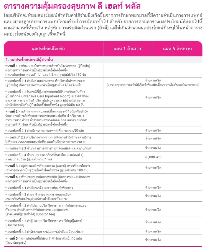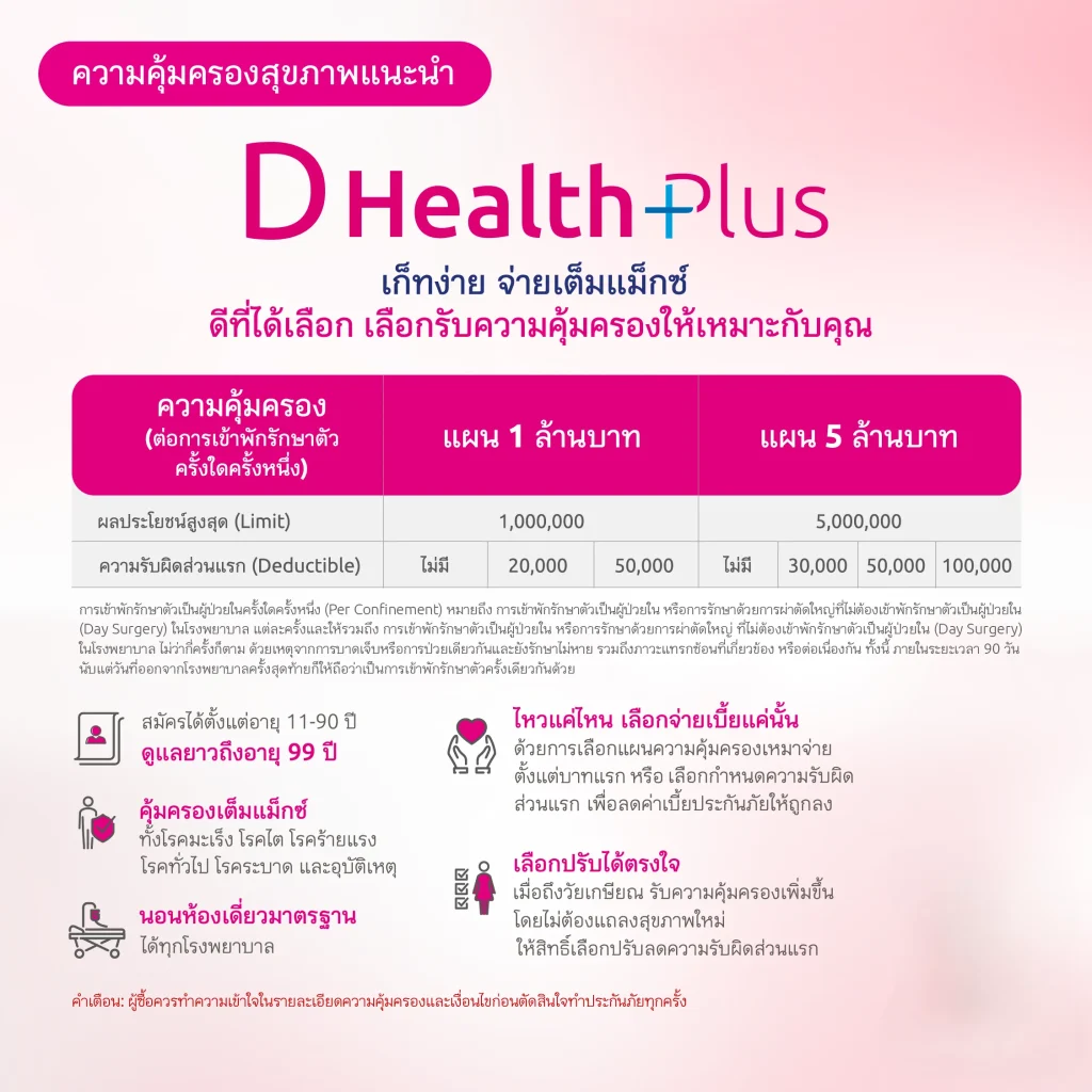 จุดเด่นของประกันสุขภาพดีเฮลท์พลัส