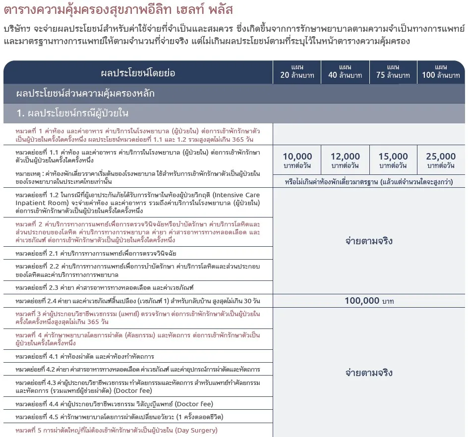 1.ประกันสุขภาพเหมาจ่ายอีลิทเฮลท์พลัส