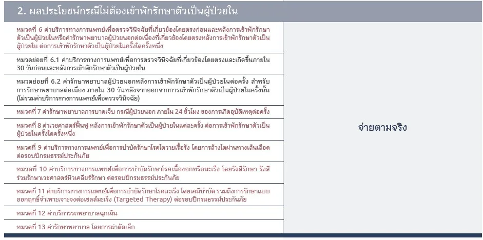 – เหมาจ่ายค่ารักษาพยาบาลทั้งผู้ป่วยใน IPD และผู้ป่วยนอก OPD