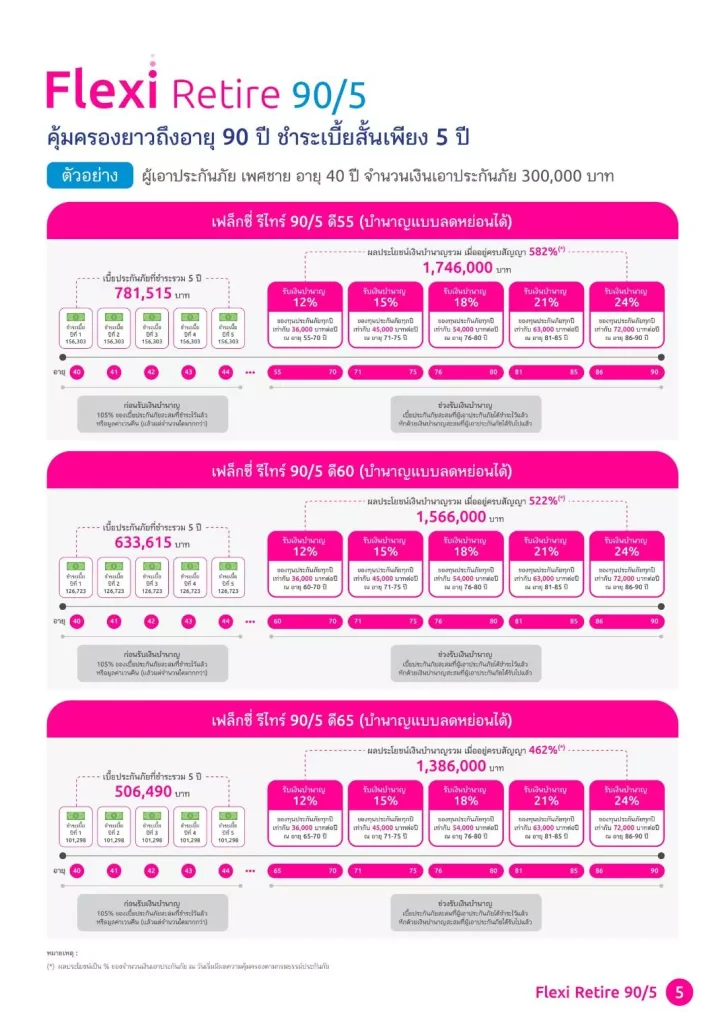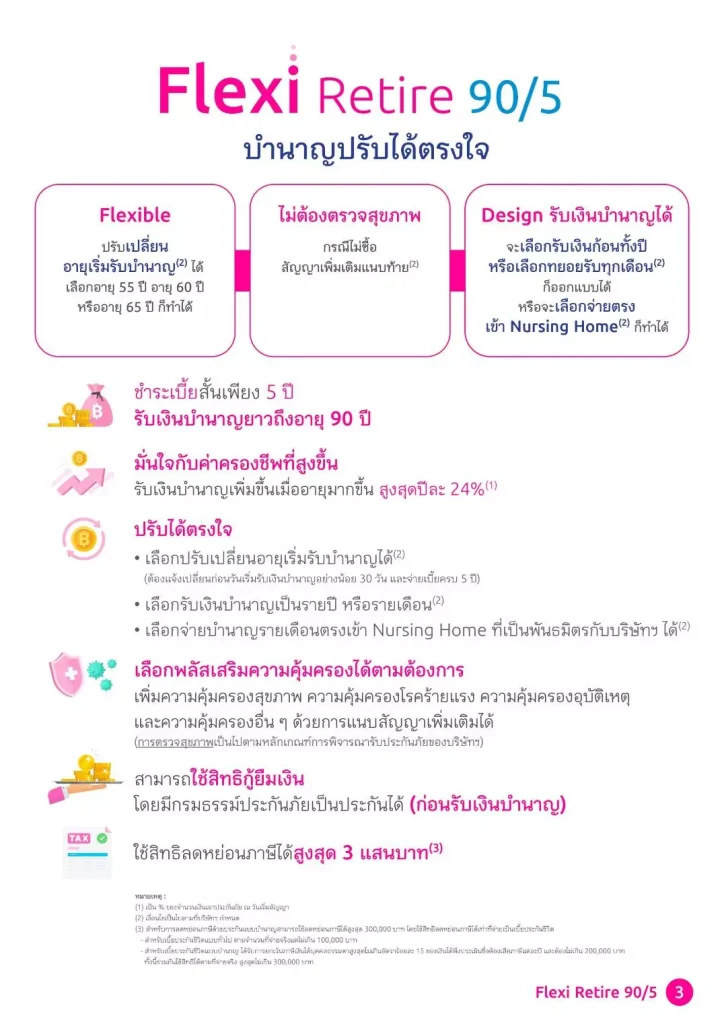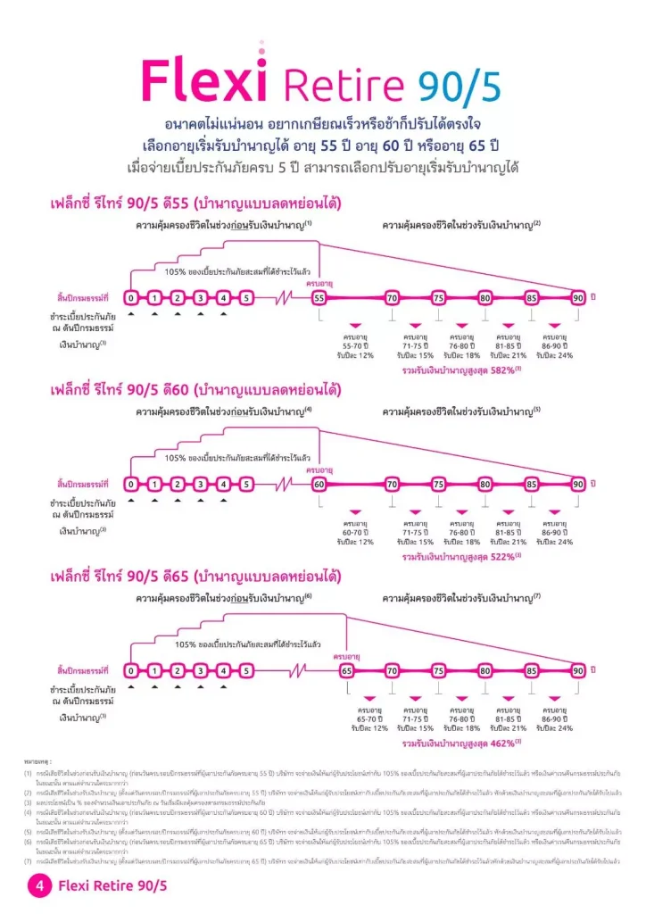 1. ประกันบำนาญเฟล็กซี่ รีไทร์ 90/5 ดี 55, ดี 60, ดี 65 (บำนาญแบบลดหย่อนได้)