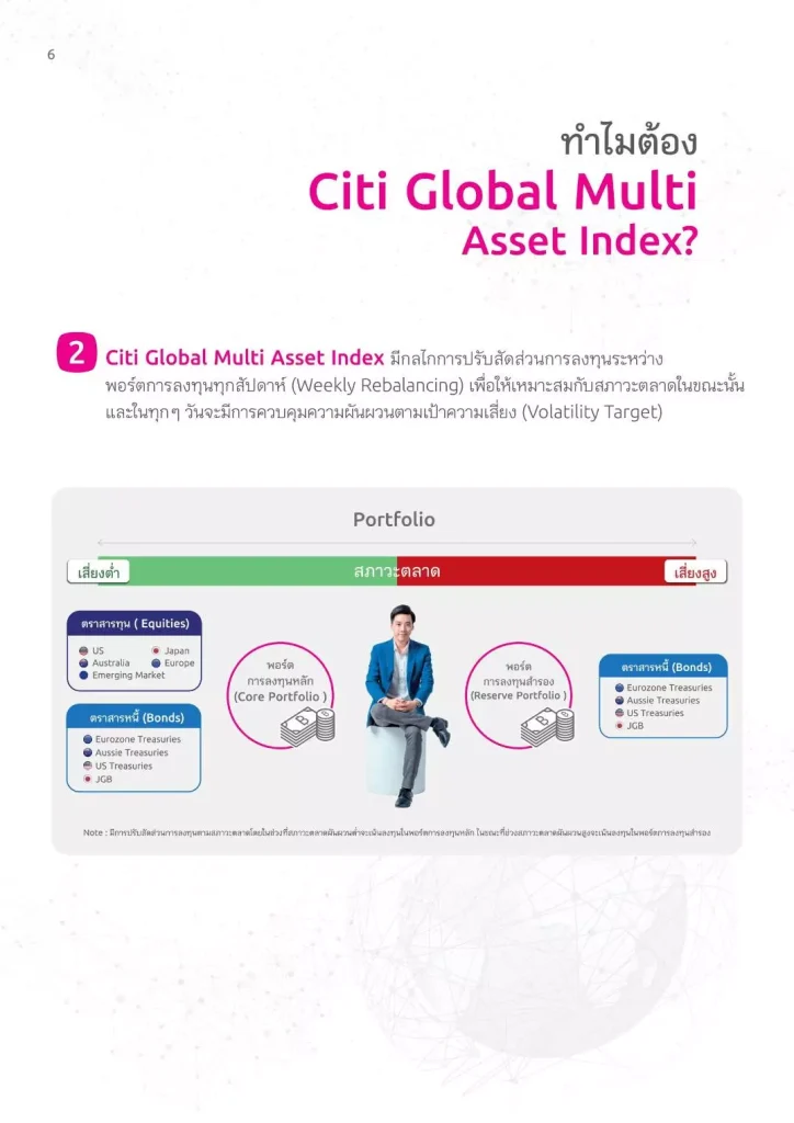6. โอกาสลงทุนในระดับสากล เพื่อสร้างผลตอบแทนแบบไร้ขีดจำกัด ประกันชีวิตรูปแบบใหม่ ที่ไม่ได้ล็อคอัตราผลตอบแทนเหมือนประกันชีวิตรูปแบบเดิมๆ แต่เปิดโอกาสรับผลตอบแทนจากการลงทุนได้อย่างเต็มที่ (Upside gain) ผ่านดัชนี Global Multi Asset USD VT 5 Series 3 Index