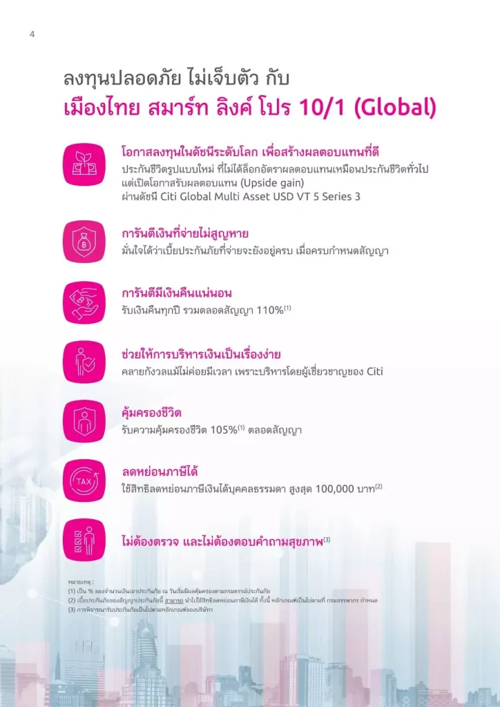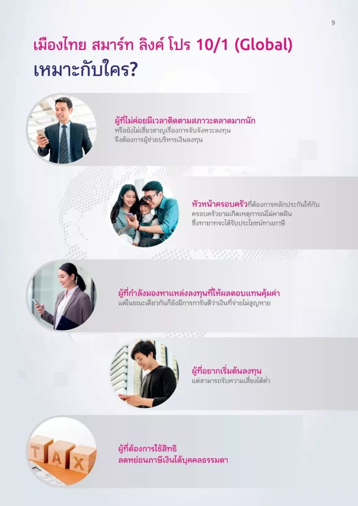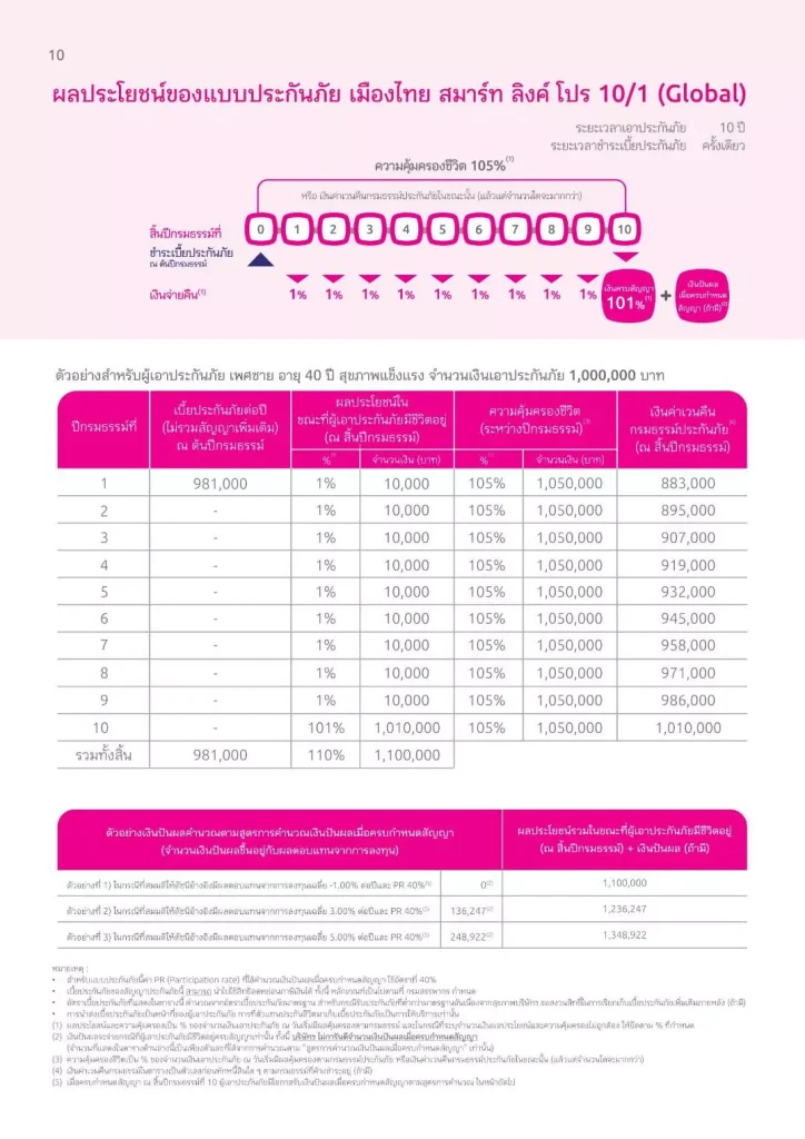 1. ประกันออมทรัพย์ เมืองไทย สมาร์ท ลิงค์ โปร 10/1 (Global)