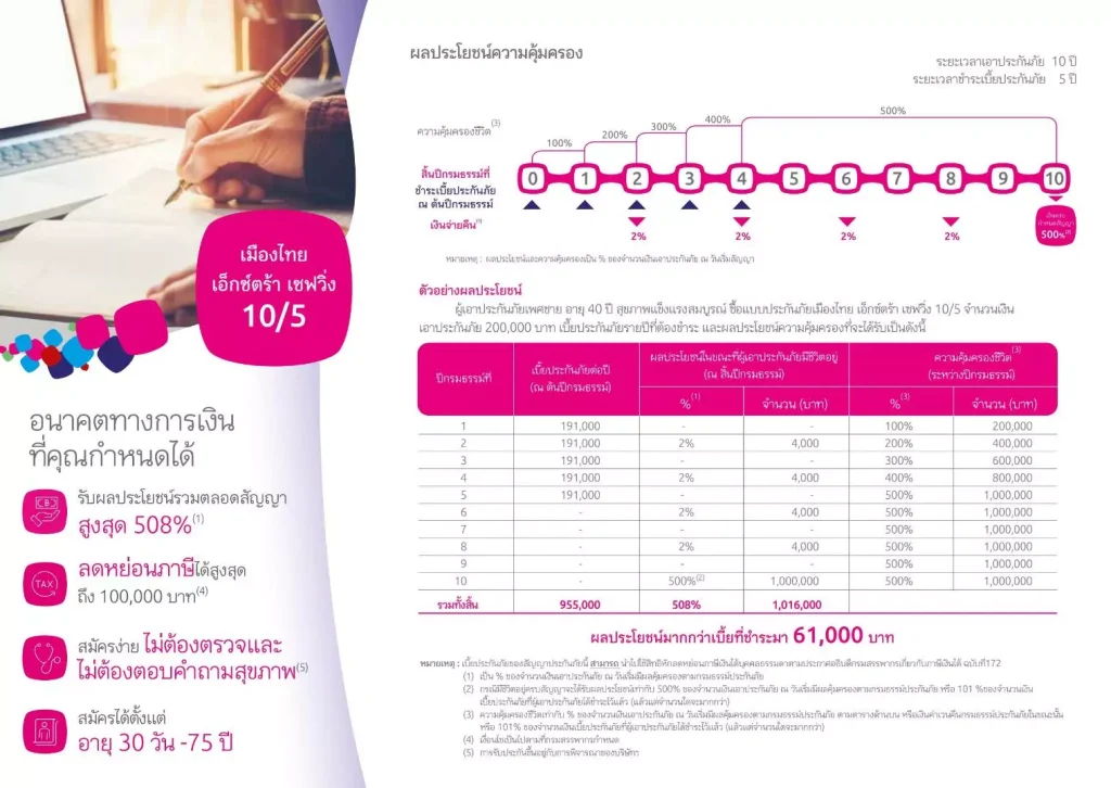 2. ประกันออมทรัพย์ เมืองไทย เอ็กตร้า เซฟวิ่ง 10/5