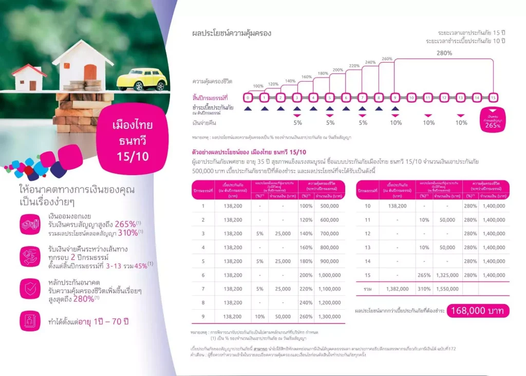 3. ประกันออมทรัพย์เมืองไทยธนทวี 15/10